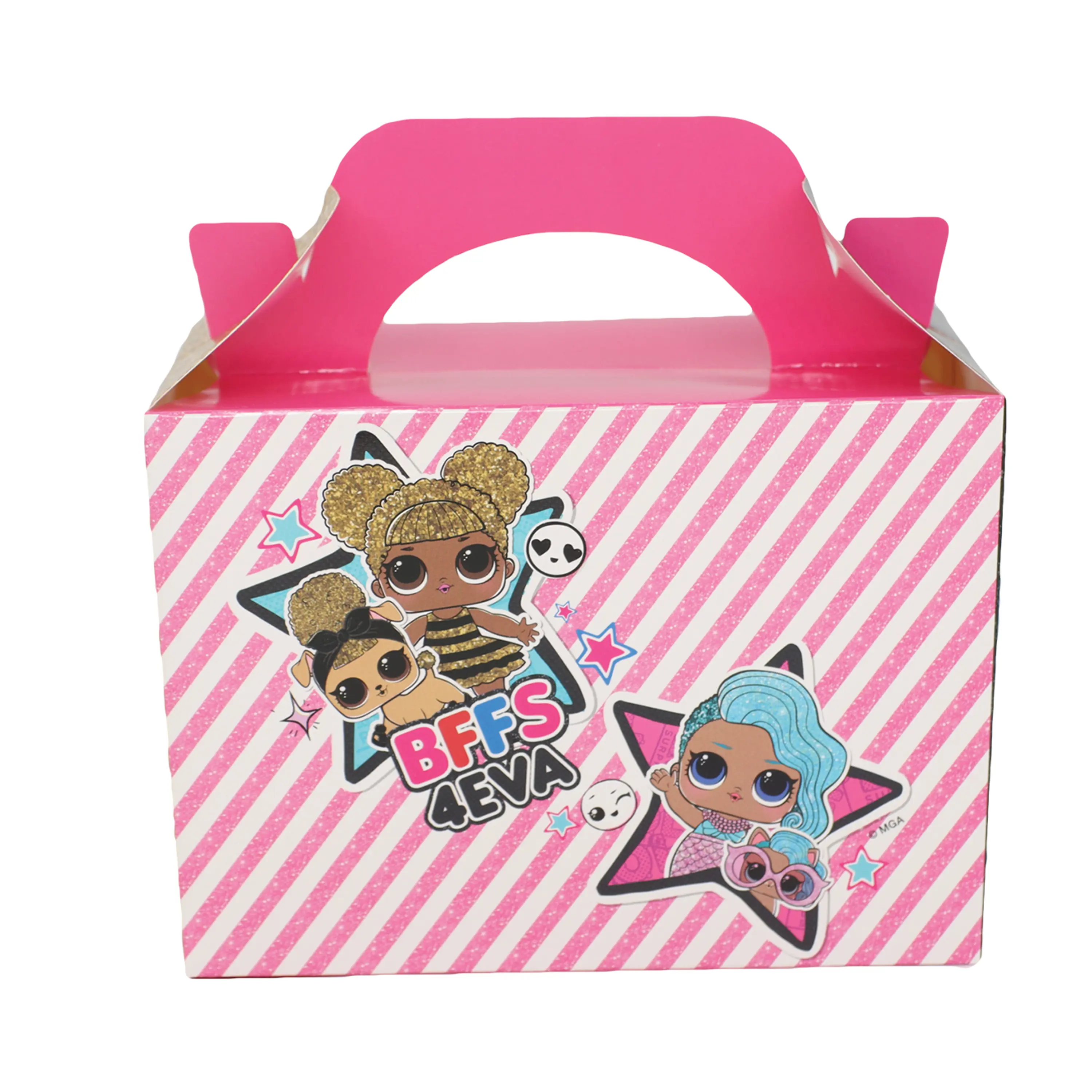 קופסת מתנות מנייר - LOL לול, עיצוב שולחן יום הולדת לiל LOL,חלק מסט יום הולדת LOL לול הכולל: צלחת LOL לול, כוס LOL לול,דף אכיל לקישוט עוגה LOL לול, מפיות LOL לול, קופסת מתנות מנייר LOL לול